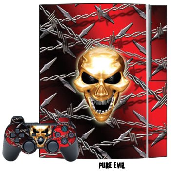 Protective Skin Decal Cover Sticker for Playstation 3 Console + two PS3 Controllers - Pure Evil