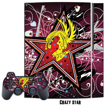 Protective Skin Decal Cover Sticker for Playstation 3 Console + two PS3 Controllers - Crazy Star