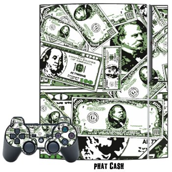Protective Skin Decal Cover Sticker for Playstation 3 Console + two PS3 Controllers - Phat Cash