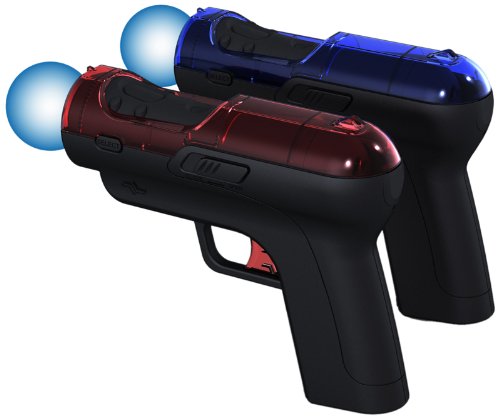 Ideal for shooting games on the PS3 that use the Move Motion Controller for PS3. Textured grip for added control and comfort. Hidden Move Motion controller design with quick release lid. Colorful, polycarbonate lids are great for defining player style. Lightweight design allows you to play for extended periods of time comfortably. Additional gun allows you to play with or against a friend. Compatible with MOVE Motion Controller for PS3.