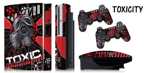 Protective skins for FAT Playstation 3 System Console, PS3 Controller skin included - TOXICITY RED