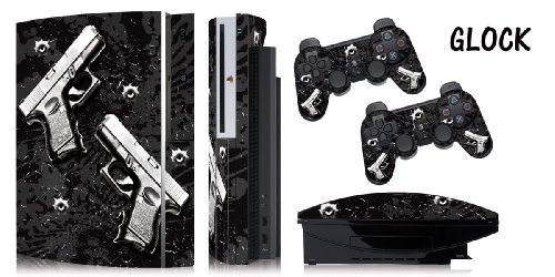Protective skins for FAT Playstation 3 System Console, PS3 Controller skin included - GLOCK BLACK