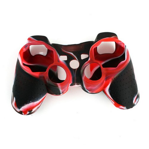 DHT Camouflage Silicone Cover Case Skin for PS3 Controller Red with Black