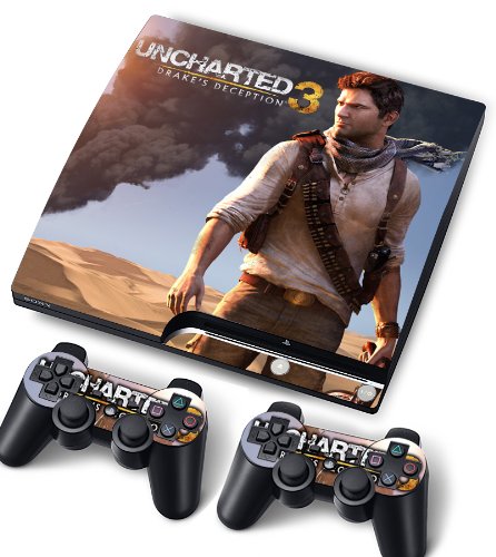 Skin Sticker for Playstation 3 Slim and 2 Consoles Uncharted 3 Drake's Deception