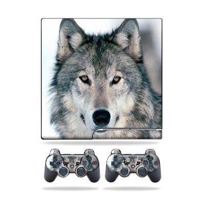 Protective Vinyl Skin Decal Cover for Sony Playstation 3 PS3 Slim Skins + 2 Controller Skins Sticker Wolf