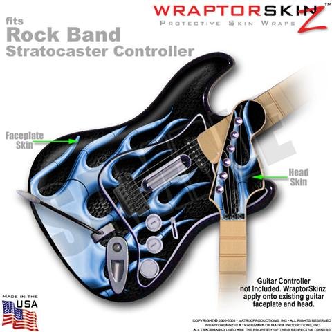 Metal Flames Blue WraptorSkinz Skin fits Rock Band Stratocaster Guitar for Nintendo Wii, XBOX 360, PS2 & PS3 (GUITAR NOT INCLUDED)