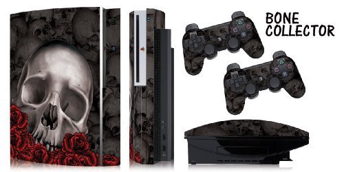 Designer skins for FAT Playstation 3 System Console, PS3 Controller skin included - BONECOLLECTOR BLACK