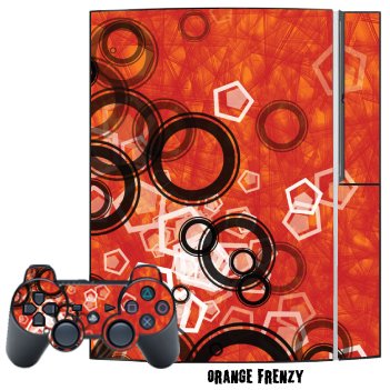Protective Skin Decal Cover Sticker for Playstation 3 Console + two PS3 Controllers - Orange Frenzy