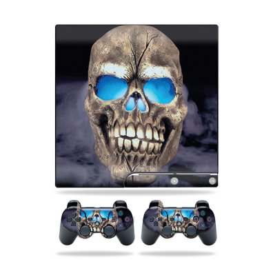 Protective Vinyl Skin Decal Cover for Sony Playstation 3 PS3 Slim Skins + 2 Controller Skins Sticker Psycho Skull