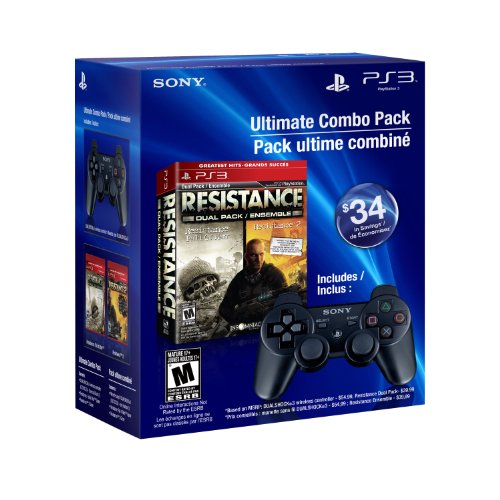 Resistance DualPack:It is 1951, an alien species known only as the Chimera have taken over Asia and most of Europe. In Resistance: Fall of Man, follow U.S. Ranger Nathan Hale as he supports the British resistance in a desperate attempt to prevent mankind’s total annihilation. Then, rejoin the fight in Resistance 2 as humanity’s fate is once again placed in Nathan’s hands as he fights to defend America while struggling to survive the Chimera infection inside himself.DUALSHOCK 3 wireless controller: Get closer to the action with the DUALSHOCK 3 wireless controller, the official Bluetooth controller for the PS3 system. The comfortable grip, intense vibration feedback, and intuitive SIXAXIS motion sensing controls put precision and control firmly in your hands for an immersive gaming experience.