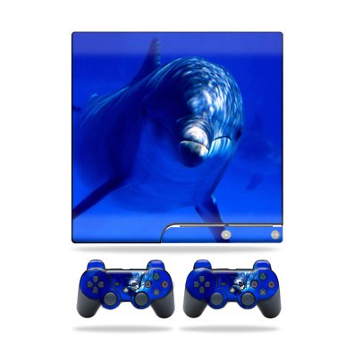 Protective Vinyl Skin Decal Cover for Sony Playstation 3 PS3 Slim Skins + 2 Controller Skins Sticker Dolphin