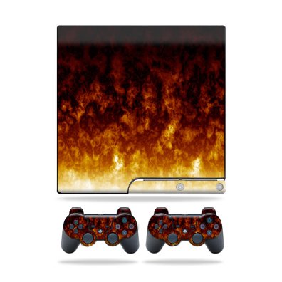 Protective Vinyl Skin Decal Cover for Sony Playstation 3 PS3 Slim Skins + 2 Controller Skins Sticker Firestorm
