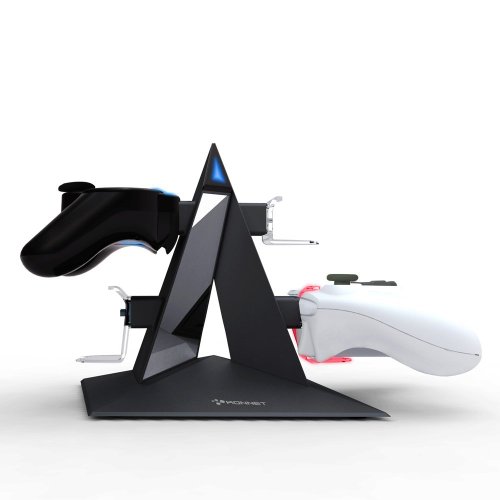 The KONNET Power Pyramid is stylish charging station for the Microsoft XBox 360 and Sony PlayStation3 wireless controllers. It is equipped to charge up to 4 remote controllers at one time with LED charging status indicators. The pioneering rhombus-shaped mechanical design reflects its heavy metallic-like style and goes beyond common charging capability. In addition to it's charging capabilities, the KONNET Power Pyramid is truly a conversation piece which will be the envy of others.