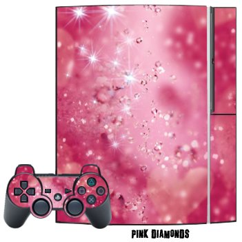 Protective Skin Decal Cover Sticker for Playstation 3 Console + two PS3 Controllers - Pink Diamonds