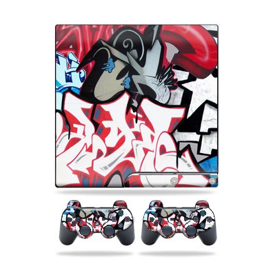 Protective Vinyl Skin Decal Cover for Sony Playstation 3 PS3 Slim Skins + 2 Controller Skins Sticker Graffiti Mash Up