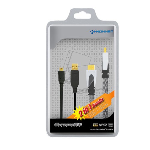 HDMI Rev 1.4b High Speed cable for 3D Gaming. Support Deep Color & Audio Return Channel. 28AWG Oxygen-Free Copper Wire; 24K Gold Plated HDMI type A connectors; Support HDCP; Support 480i/p, 720i/p, 1080i/p & 4K x 2K high definition video; Length: 1.5 meters. USB Charge Cable; 3 meters Extra Long USB Cable. Power Up your PS3 Wireless Controller while playing; Compatibility: PS3, HDTV.