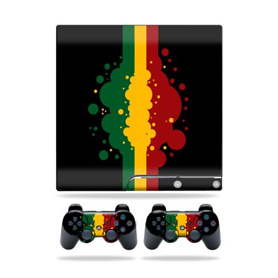 Protective Vinyl Skin Decal Cover for Sony Playstation 3 PS3 Slim Skins + 2 Controller Skins Sticker Rasta Flag