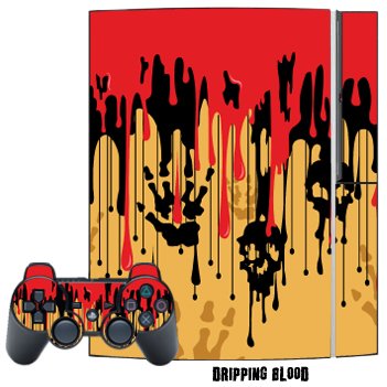 Protective Skin Decal Cover Sticker for Playstation 3 Console + two PS3 Controllers - Dripping Blood