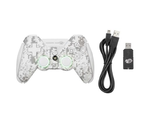 Infiltrate the world of state-of-the-art combat with the Call of Duty: Modern Warfare 2 Wireless Combat Controller for PLAYSTATION 3. Equipped with unique, easily-accessible “Combat” buttons for on-the-fly custom remapping; seamlessly render your adversaries helpless as you flaunt your tactical skills with optimum control and accuracy. With immersive backlit analog sticks, digital camouflage design and ergonomic firearm grips, the Combat Controller thrusts you upon the frontline of military gaming. Featuring a built-in rechargeable battery and lag-free 2.4GHz wireless signal—which permits gameplay anywhere in the room—this is the weapon of choice for Modern Warfare.
