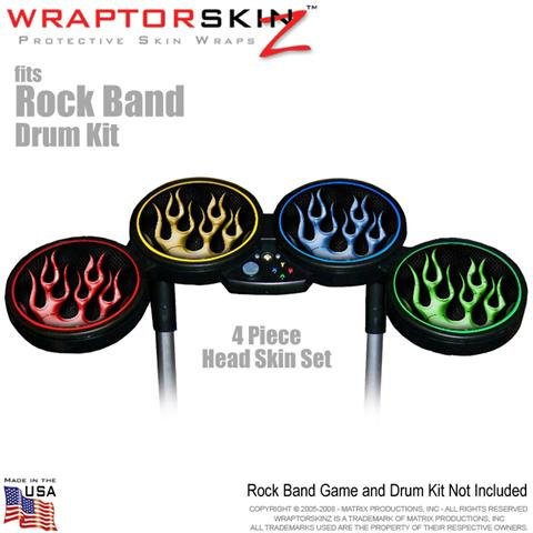 Metal Flames Colors Skin by WraptorSkinz fits Rock Band Drum Set for Nintendo Wii, XBOX 360, PS2 & PS3 (DRUMS NOT INCLUDED)Skin Looks amazing. Easy to put on and take off if need be for readjustments. Nice product recommended.