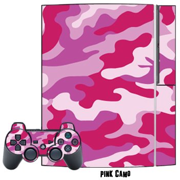 Protective Skin Decal Cover Sticker for Playstation 3 Console + two PS3 Controllers - Pink Camo