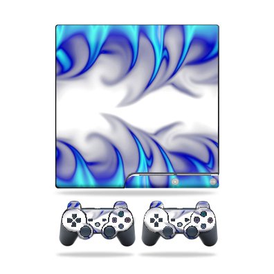 Protective Vinyl Skin Decal Cover for Sony Playstation 3 PS3 Slim Skins + 2 Controller Skins Sticker Blue Fire