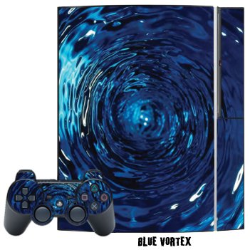 Protective Skin Decal Cover Sticker for Playstation 3 Console + two PS3 Controllers - Blue Vortex