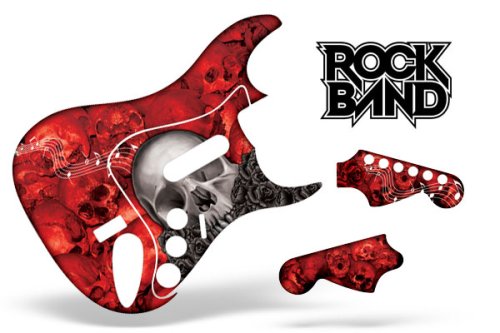 Rock Band Guitar Skin, Fits Xbox 360 / PS3 (Stratocaster Guitar) BoneCollector - Red